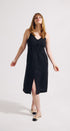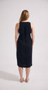 - Semi-fitted silhouette with a flattering midi length