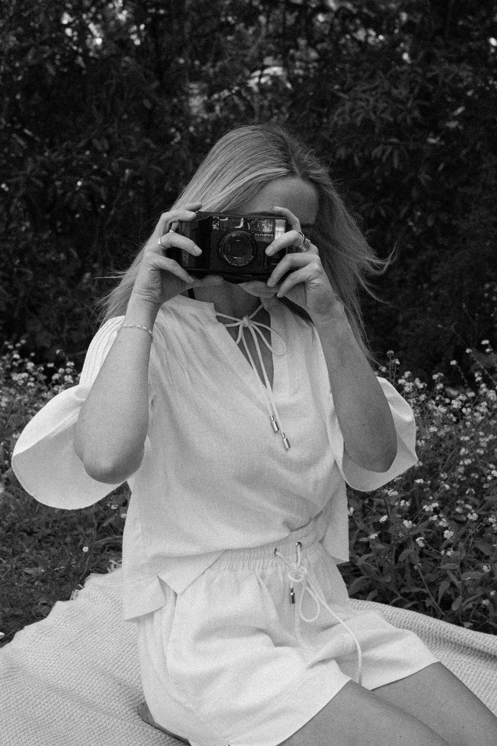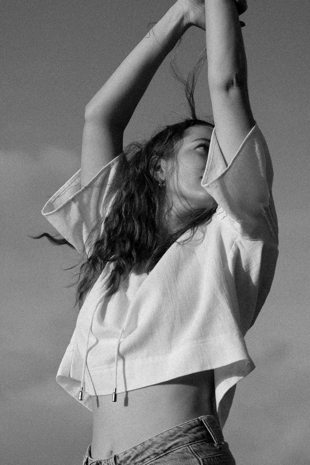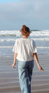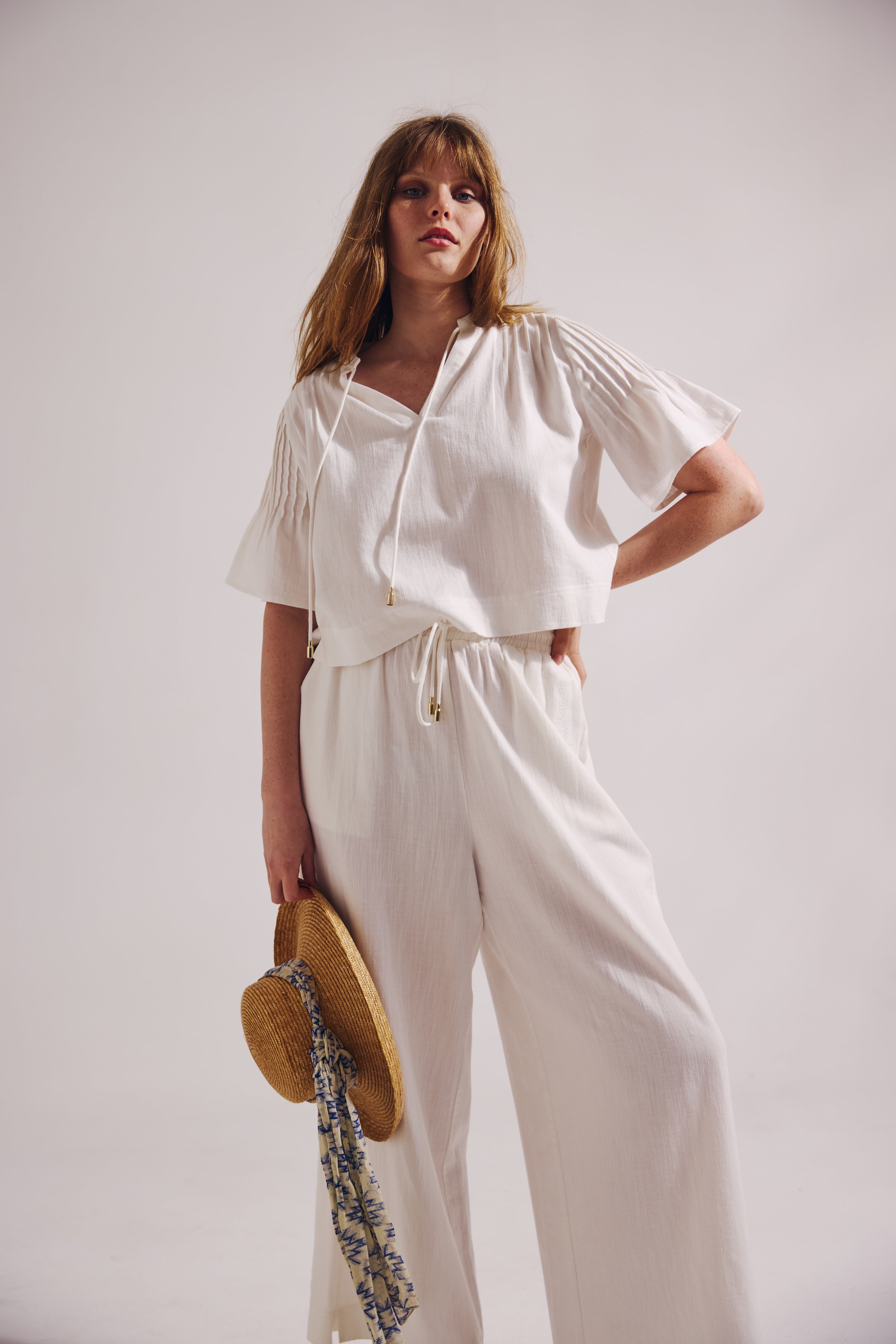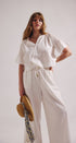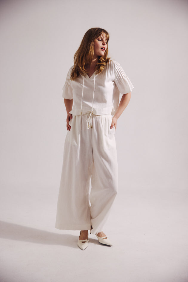 - Short sleeves with gentle volume for a soft, draped shape