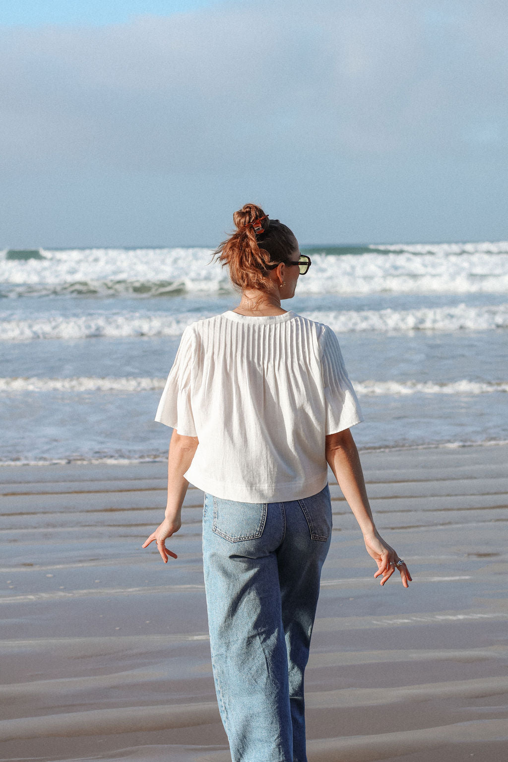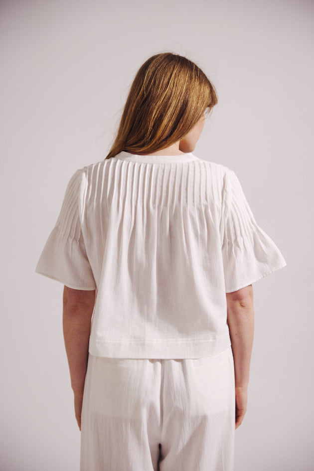 - Pin-tuck detailing across shoulders and back for subtle texture and structure